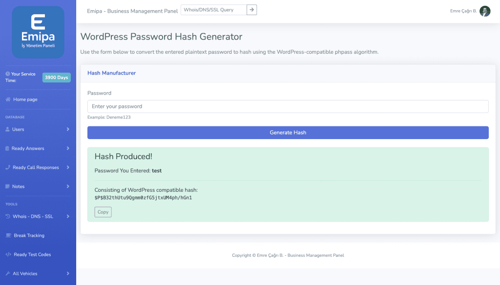 WordPress Hash Üretici: wp_hash_password() uyumlu şifreler üretir